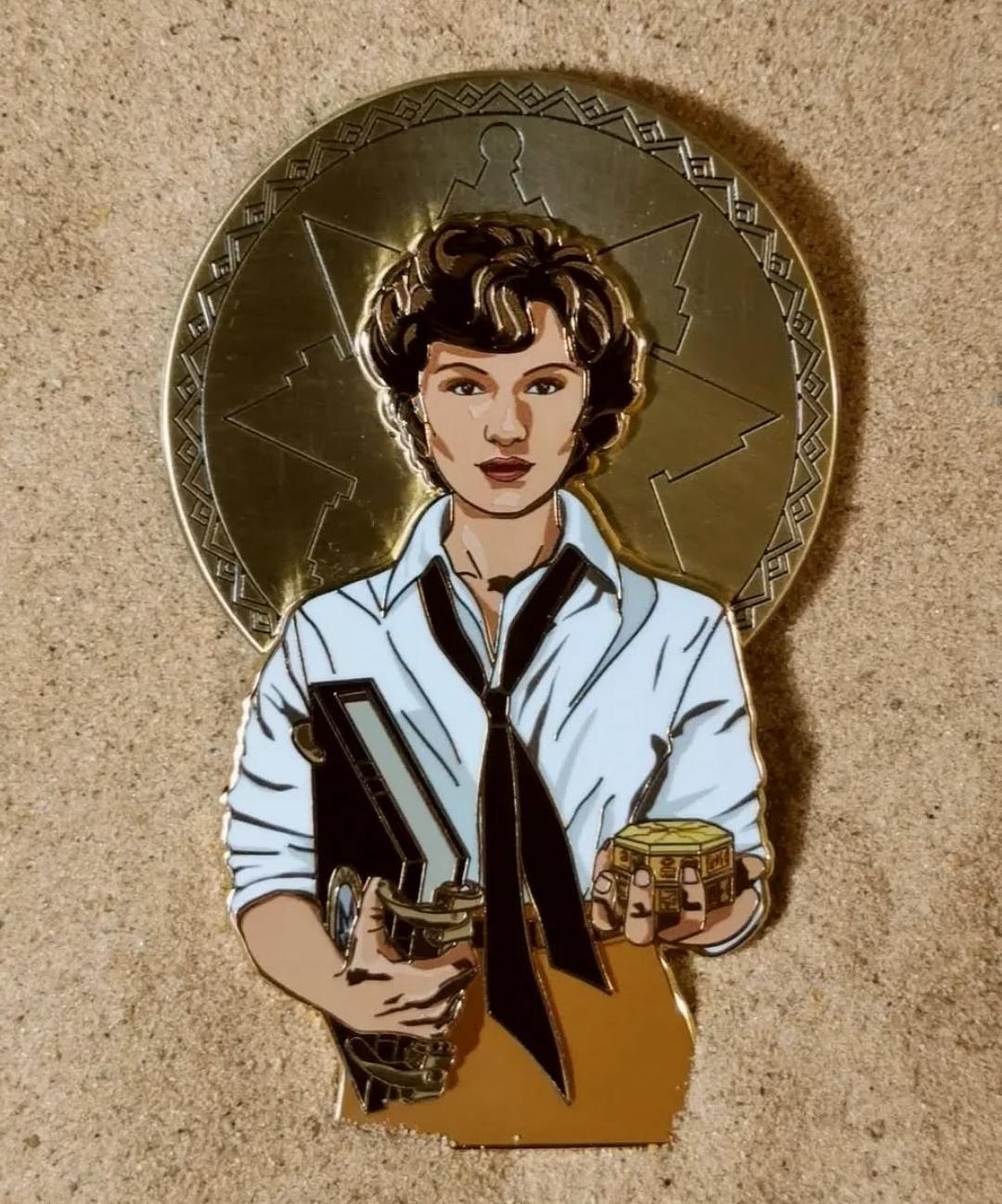 The 'Saint Evie' and 'Saint Rick' are an ode to the best onscreen couple, ever. Each pin will come in a cloth bag with a backing card and a sticker of the same design.